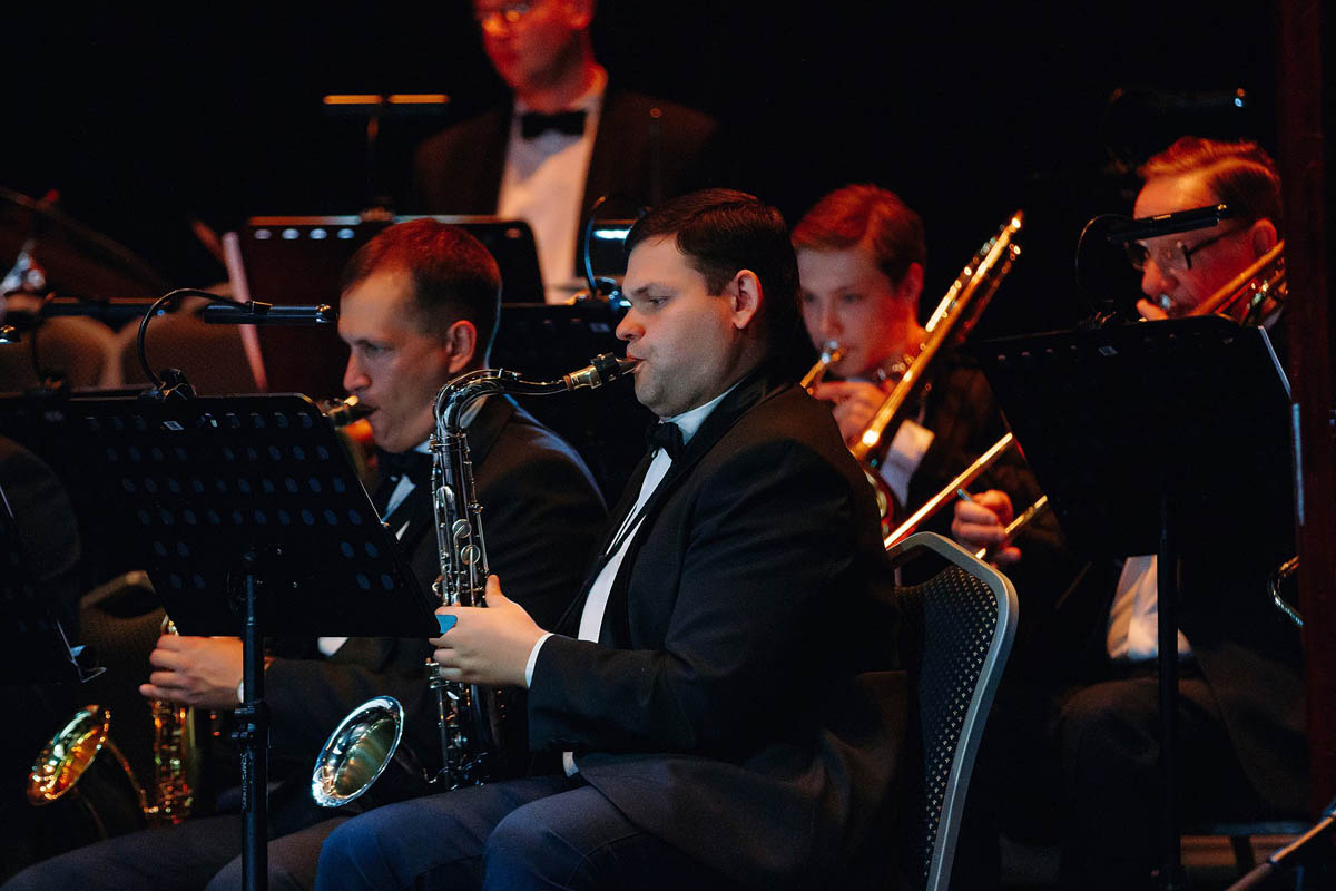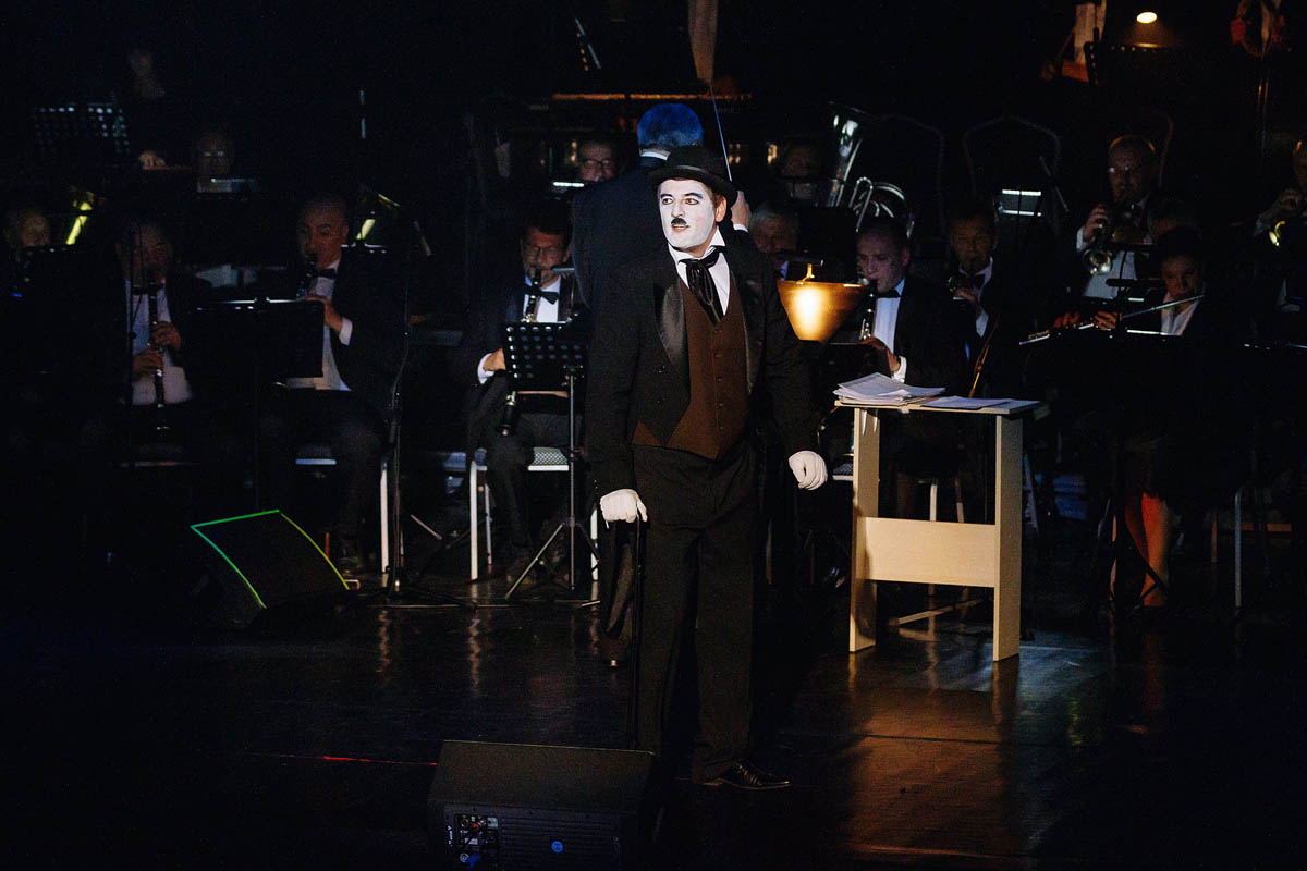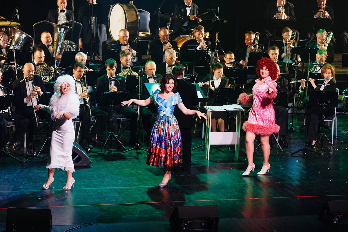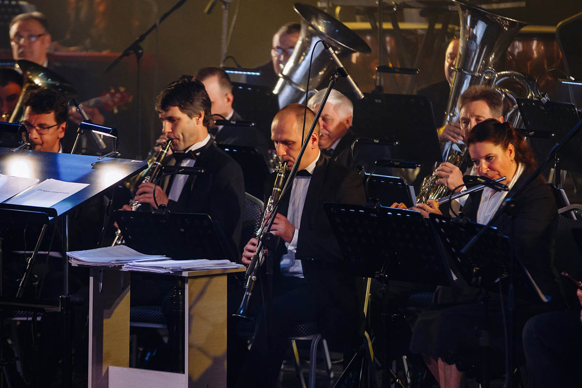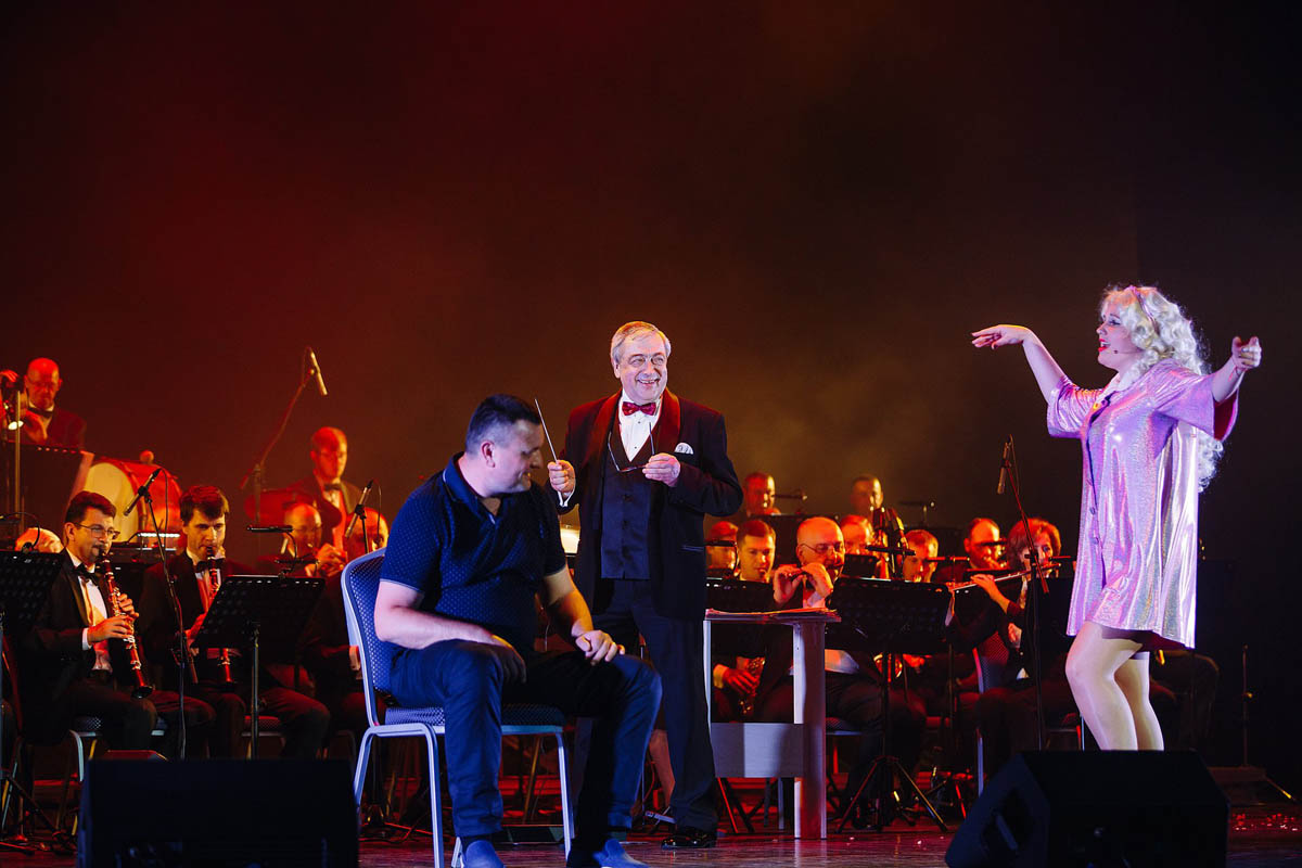 Концертный духовой оркестр Калининградской филармонии, возможности которого поистине беспредельны, в течение полутора часов исполнял самые знаменитые музыкальные шлягеры из российских и голливудских фильмов. А солисты виртуозно раз за разом перевоплощались в героев из этих кинолент и появлялись перед зрителями в совершено разных амплуа: от Мэрилин Монро до инопланетянки Дивы Плавалагуны из «Пятого элемента».