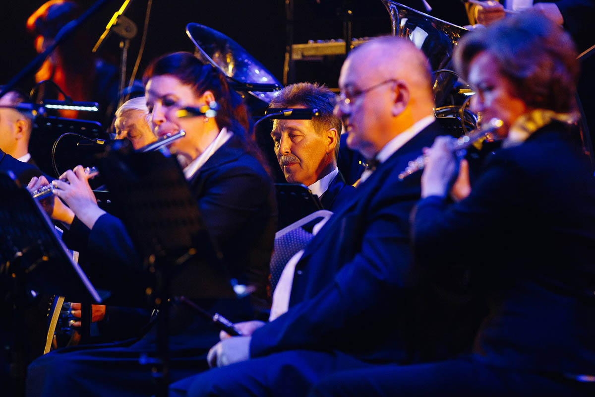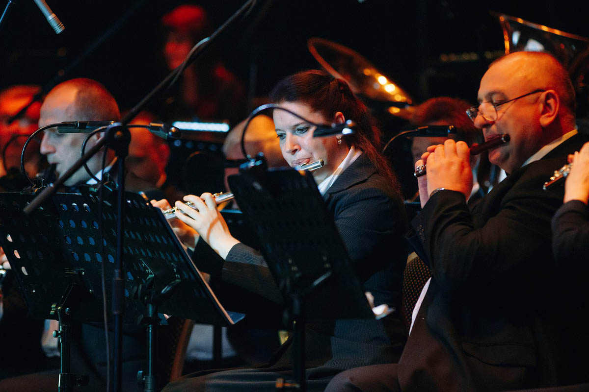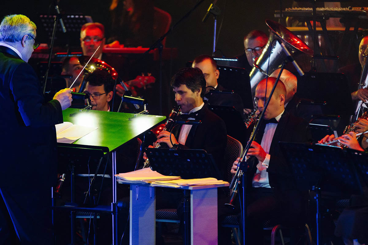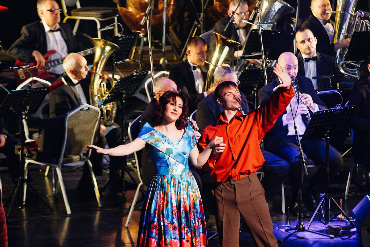 Концертный духовой оркестр Калининградской филармонии, возможности которого поистине беспредельны, в течение полутора часов исполнял самые знаменитые музыкальные шлягеры из российских и голливудских фильмов. А солисты виртуозно раз за разом перевоплощались в героев из этих кинолент и появлялись перед зрителями в совершено разных амплуа: от Мэрилин Монро до инопланетянки Дивы Плавалагуны из «Пятого элемента».