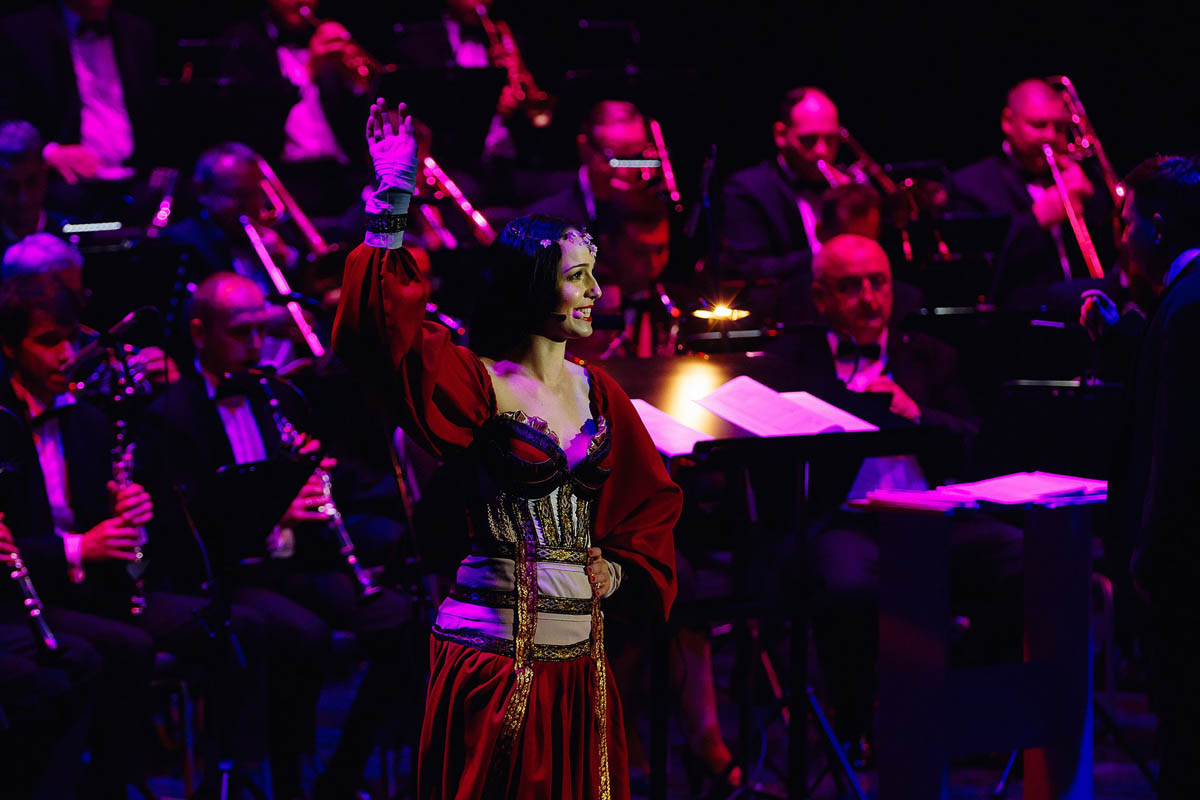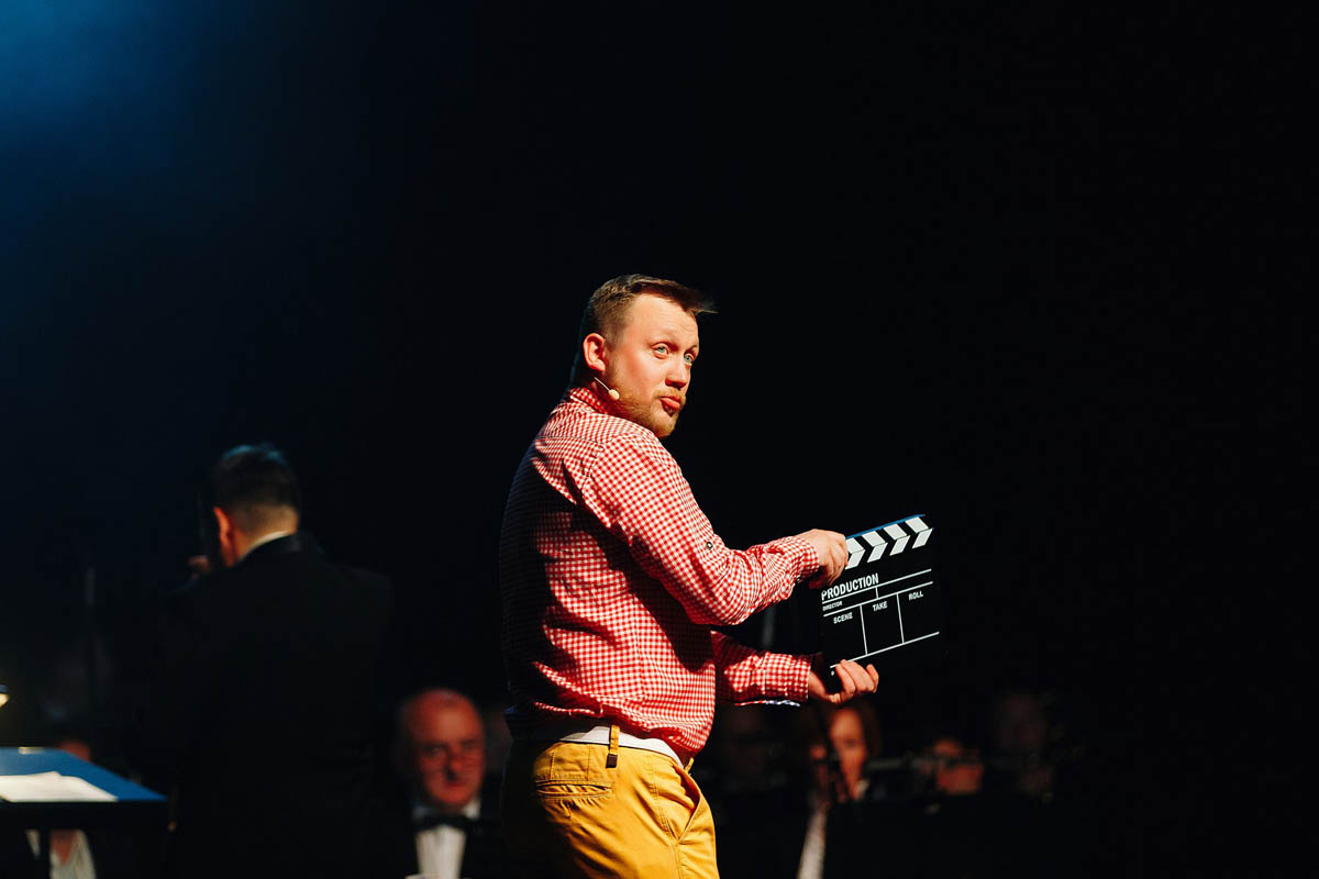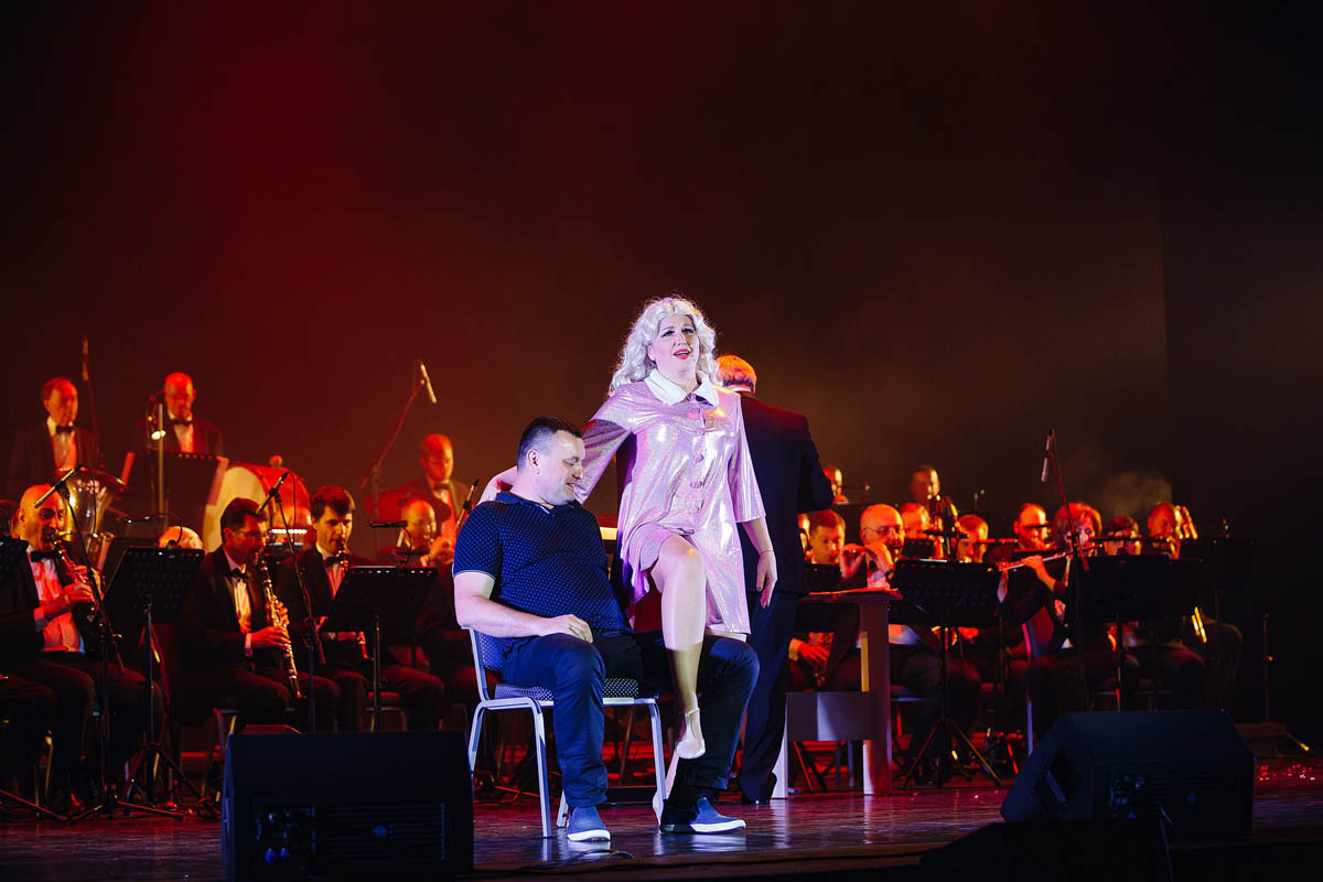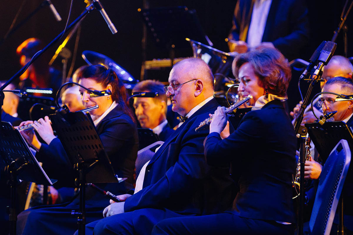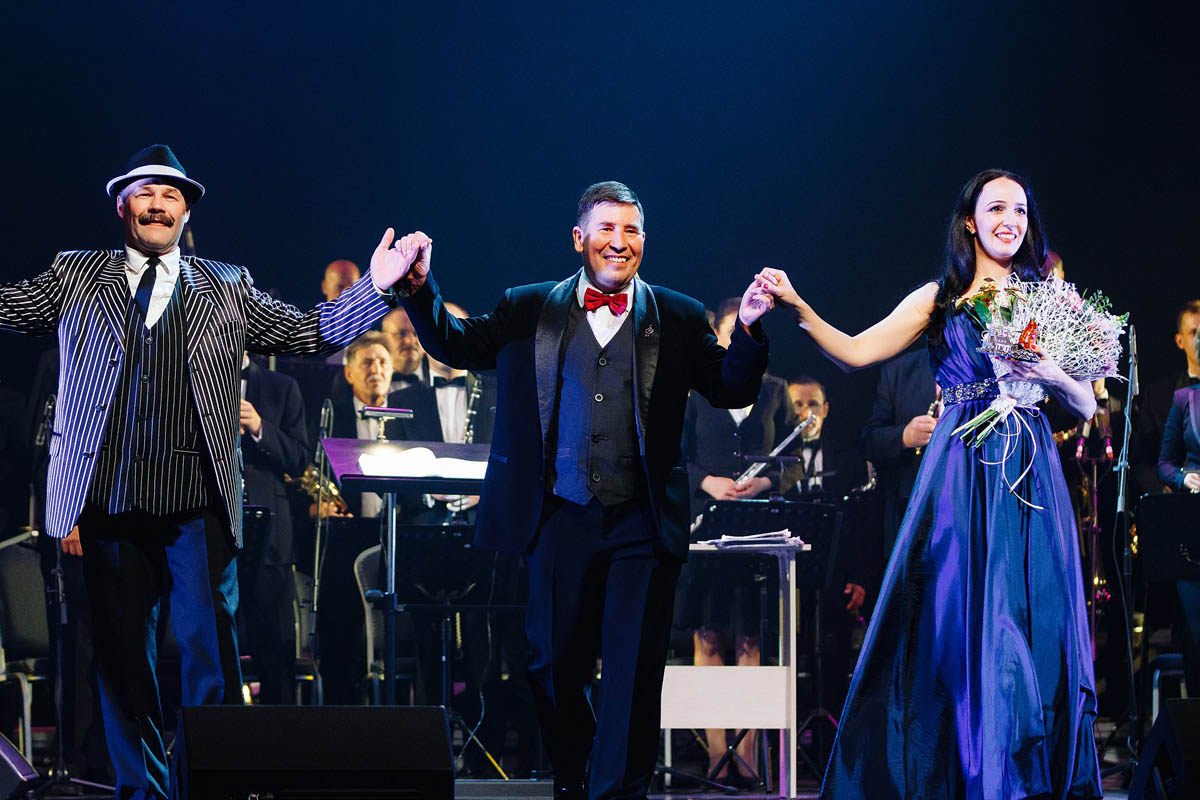 Концертный духовой оркестр Калининградской филармонии, возможности которого поистине беспредельны, в течение полутора часов исполнял самые знаменитые музыкальные шлягеры из российских и голливудских фильмов. А солисты виртуозно раз за разом перевоплощались в героев из этих кинолент и появлялись перед зрителями в совершено разных амплуа: от Мэрилин Монро до инопланетянки Дивы Плавалагуны из «Пятого элемента».
